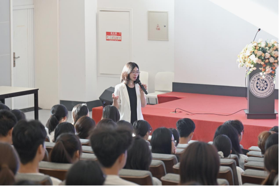 陈永清则以“遇见更好的自己”为主题展开分享。她深入剖析了新生初入大学可能遇到的无助、失落、孤独等心理状态,并开出“良方”:真正的破局之道在于“认识自己、做好自己、快乐自己”,正确认识自我,养成良好习惯、高效管理时间、坚决克服惰性,享受成长道路上的挫折和孤独。同时,她提出了“三个学会”的成长指引:学会自爱,以修养身心、守护尊严;学会选择,以明辨方向、把握机遇;学会感恩,以铭记过往、温良前行。