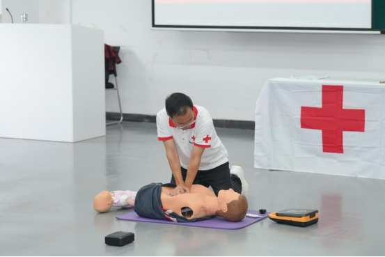 本次培训采用“理论讲授+实操训练”的教学模式,肖宾老师以真实的急救案例导入,围绕红十字运动起源、现场救护原则、心肺复苏操作要领、自动体外除颤器(AED)使用等核心内容展开系统讲解。他特别强调了“黄金四分钟”在心搏骤停救援中的关键作用,并通过分步演示、错误纠正、情景模拟等多元化教学方法,讲解了应急救护的理论基础与操作规范。