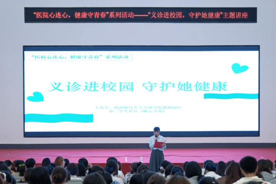 4月9日,西南财经大学天府学院德阳校区第二学生社区(颐心书苑)联合德阳市罗江区人民医院,共同举办“医校心连心 健康守青春”系列活动之“义诊进校园 守护她健康”主题活动,以义诊服务与专题讲座相结合的形式,为广大师生送上健康关怀。