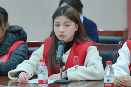 学院志愿者代表龚紫霞分享了自己的服务感悟:从紧张忐忑到从容担当,在引导挂号、解答咨询的小事中体会到“多一分耐心,患者就少一分慌张;多一次指引,就医就少一分弯路”的志愿意义。她表示,志愿服务让自己读懂了医护人员的坚守与奉献,未来将继续参与公益,用青春点亮善意、温暖医患。