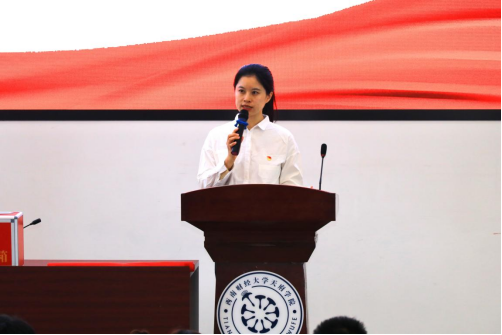 大会伊始,陈雯副书记代表学院致辞,对大会召开表示热烈祝贺,并对第四届学生干部的辛勤付出给予高度肯定。她指出,团总支、学生会作为学院凝聚青年、服务同学的重要力量,始终坚持以“学习、超越、担当”为理念,在思想引领、组织建设、校园文化和社会实践等方面取得了显著成效。她寄语新一届学生骨干要发挥模范带头作用,强化服务意识,团结带领广大同学共同进步。