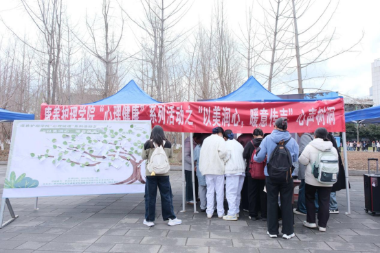 3月17日,西南财经大学天府学院德阳校区第二学生社区(颐心书苑)在蒲公英广场成功举办“以美润心,暖意传声”心声树洞主题活动。活动面向康养护理学院全体学生,采用线上线下联动模式,搭建起一个安全可靠的情绪表达与交流平台。